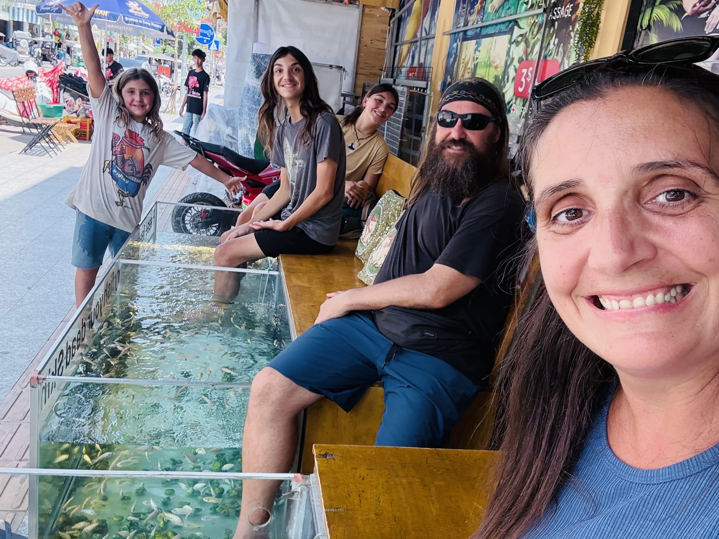 Lately, we’ve really enjoyed crossing borders over land rather than flying. For example, when we traveled from Vietnam to Cambodia, we took a ferry that stopped at the border, handled all the visa procedures for us, and then continued to Phnom Penh. From there, we rode tuk-tuks around the city and later took a public bus to Siem Reap.